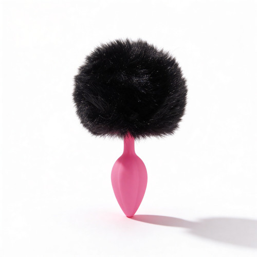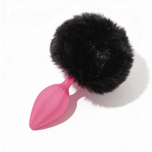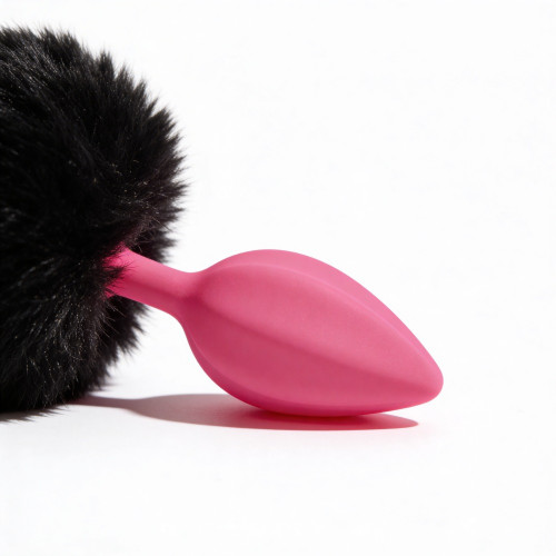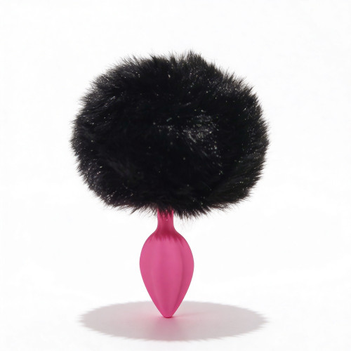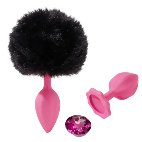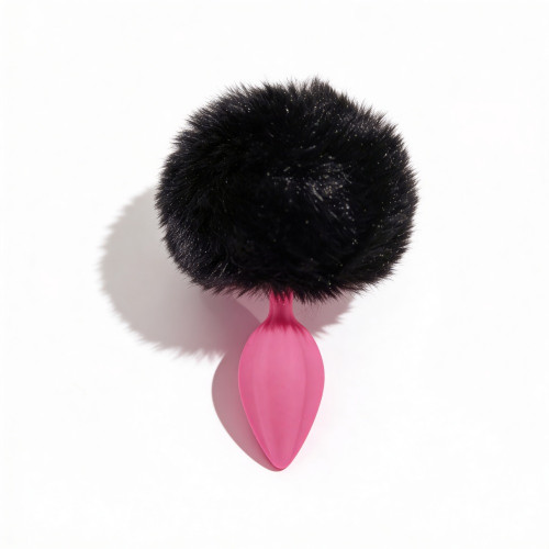 Анальная пробка рельефная ALUME, S, розовая с черным пушком и сменным розовым камнем, 7 х 2,8 см