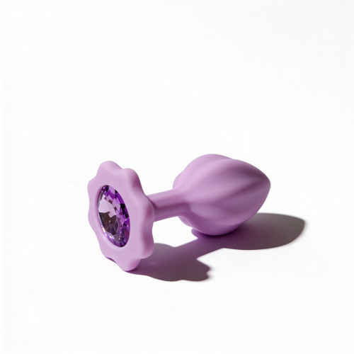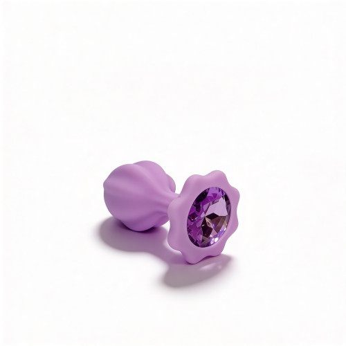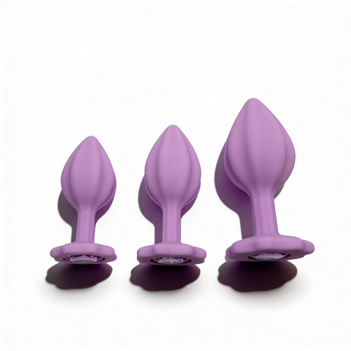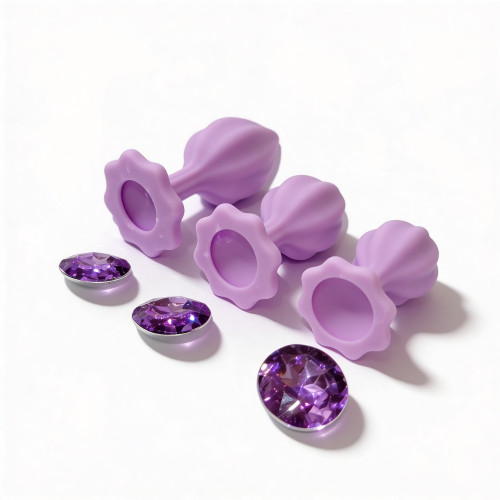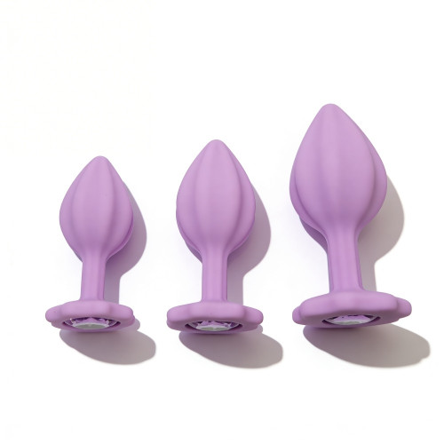 Набор силиконовых анальных рельефных пробок ALUME, S, M, L, с камнем лилового цвета, 3 шт
