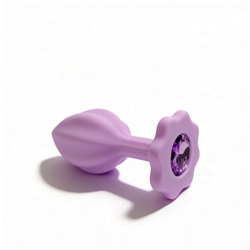 Набор силиконовых анальных рельефных пробок ALUME S, M, L лиловые с лиловыми камнями, 3 шт