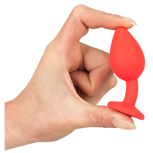 Небольшая анальная пробка красного цвета гладкой обтекаемой формы, выполнена из высококачественного силикона с бархатистой поверхностью. Имеет закругленный кончик для безболезненного и комфортного использования. Ограничительное основание украшено кристаллом, который превращает игрушку в ювелирное украшение. Длина - 7,2 см, диаметр - 0,9-2,7 см.