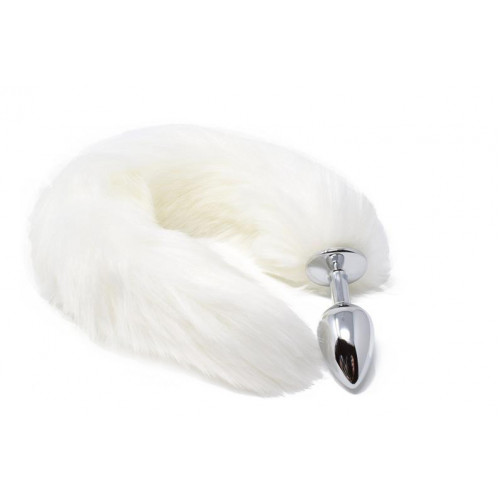 Анальная пробка серебряного цвета. Изготовлена из безопасной для здоровья нержавеющей стали. Имеет классическую обтекаемую форму, гладкую поверхность и зауженный кончик для безопасного использования. В основе пробка декорирована пушистым белым хвостиком. Длина пробки - 6,5 см, диаметр - 2,7 см.