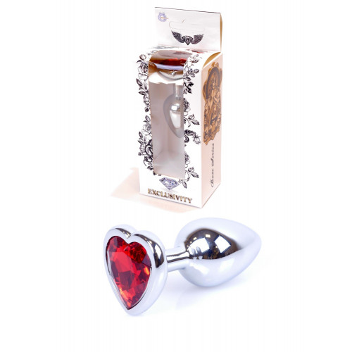 Анальная пробка-Jewellery Silver Heart PLUG Red