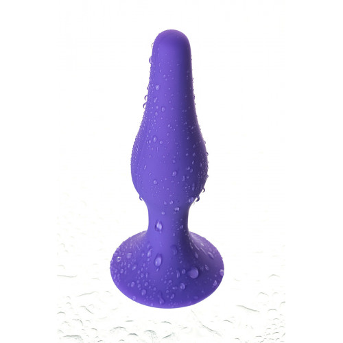Анальная пробка фиолетового цвета, сделана из мягкого силикона высокого качества. Обладает гладкой обтекаемой формой и тонким кончиком для комфортного введения. Широкое основание в виде присоски позволяет легко зафиксировать игрушку на гладкой поверхности. Длина - 10,2 см, диметр - 2 см