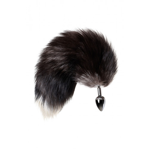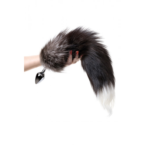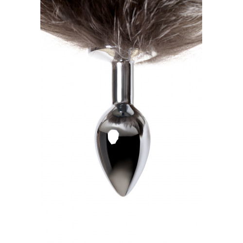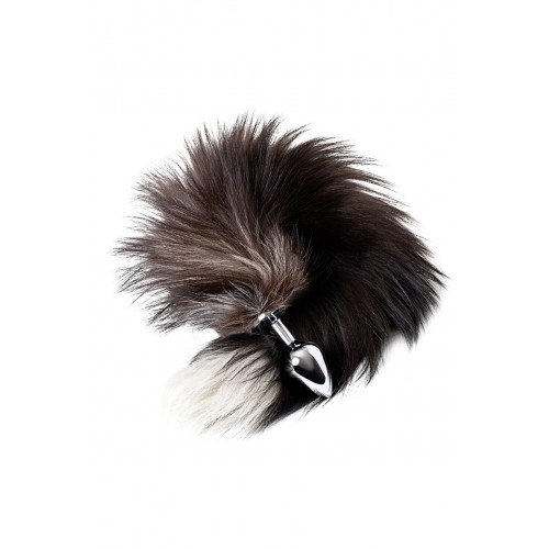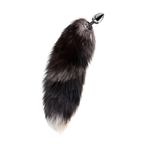 Анальная втулка Metal By Toyfa хвостом черно-бурой лисы, металл, серебристый, 45 см, ø 2,7 см