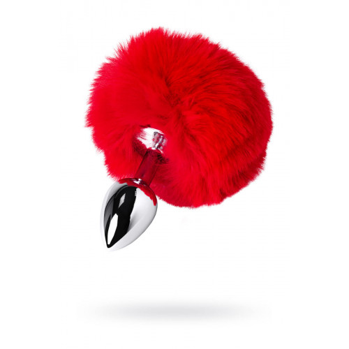 Анальная втулка Toyfa Metal, маленькая, металл + искусственный мех, серебристая, с красным хвостиком