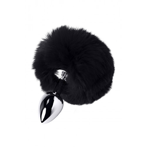 Анальная втулка Toyfa Metal, маленькая, металл + искусственный мех, серебристая, с черным хвостиком