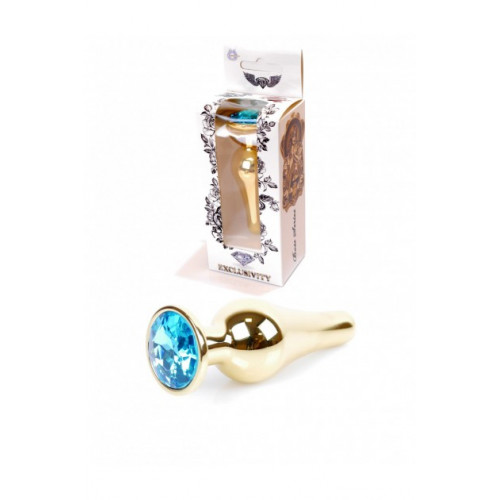 Анальная пробка из нержавеющей стали с голубым камнем Plug-Jewellery Gold BUTT PLUG- Light Blue