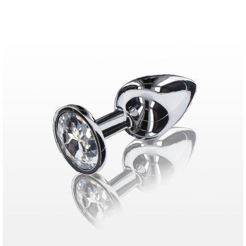 Анальный плаг со стразом Starlight Booty Jewel TOY JOY, металлическая, маленького размера, серебристая, 7.2 х 2.7