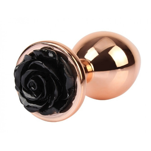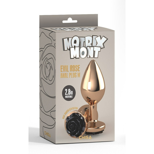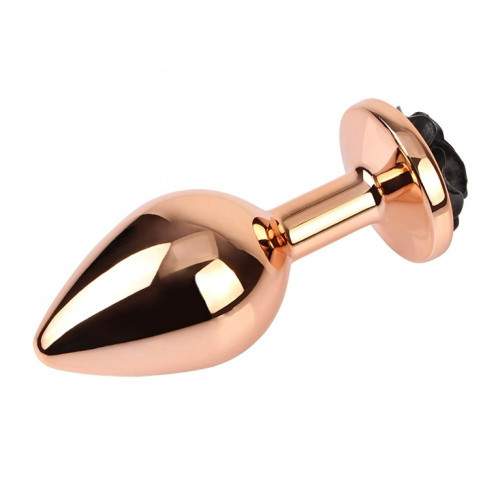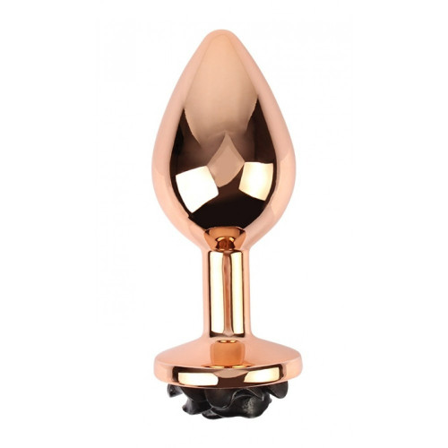 Анальная пробка металлическая золотистая с черным камнем в форме розы M Matrix Mont Chisa