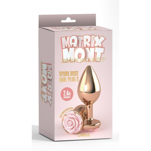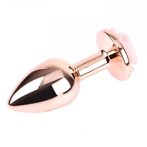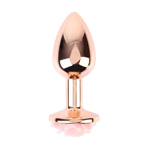 Анальная металлическая золотая пробка с розовым камнем в форме розы. Размер S Matrix Mont Chisa