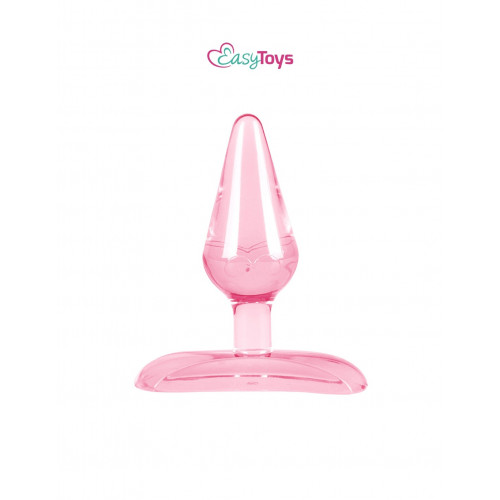 Гибкая розовая анальная пробка с узором «бабочка» и присоской.