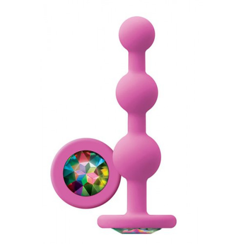 Анальная пробка с кристаллом GLAMS RIPPLE RAINBOW GEM PINK