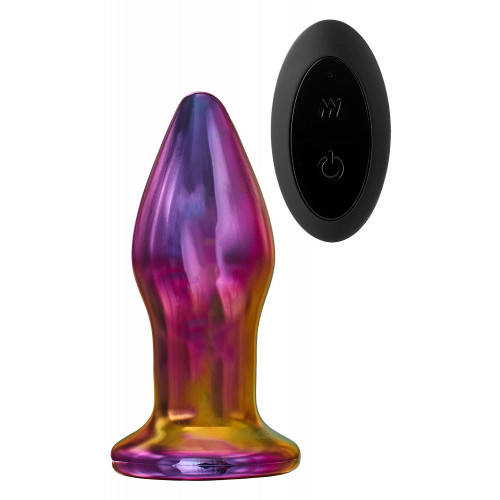 Эта анальная пробка Glamour Glass изготовлена из боросиликатного стекла, очень прочного, непористого и безопасного для тела. Пробка имеет гладкую коническую форму для легкого введения и широкое основание. Она поставляется с 10 функциями вибрации, которыми можно легко управлять с помощью беспроводного пульта дистанционного управления.