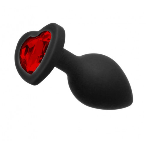 Анальная пробка с камнем Black Silicone Heart Red M