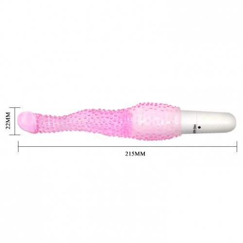 Силиконовый анальный вибратор неправильной формы, покрытый пупырышками. Цвет розовый. Размеры: длина: 21.5 см, диаметр: 2,2 см. Питание: батарейка 1xAA - нет в наличии.