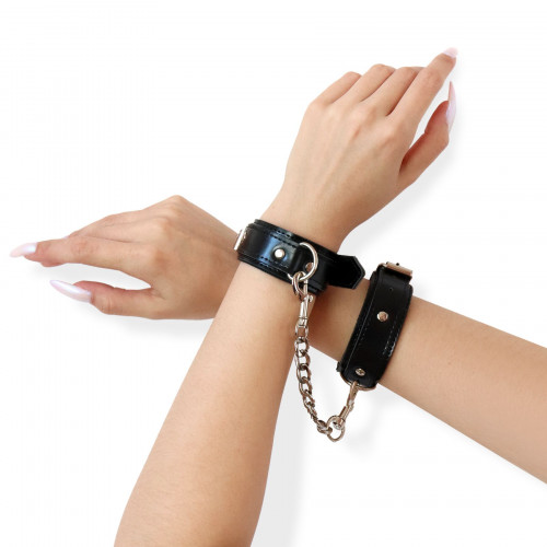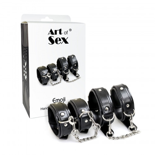 BDSM набор наручники и поножи Art of Sex - Emoji, Эко кожа, цвет Черный