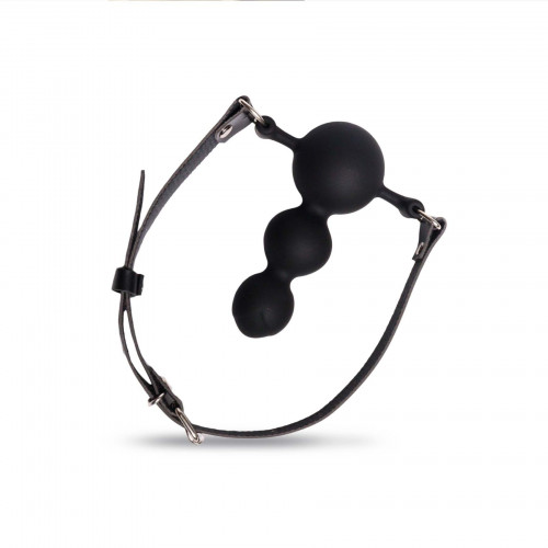 Кляп с фаллоимитатором создан для БДСМ игр и чувственных сценариев — кляп с анатомической вставкой в виде трех шариков разного диаметра и регулируемым ремешком. Лаконичный дизайн сочетает функциональность и выразительный внешний вид, делая изделие заметным акцентом в образе.