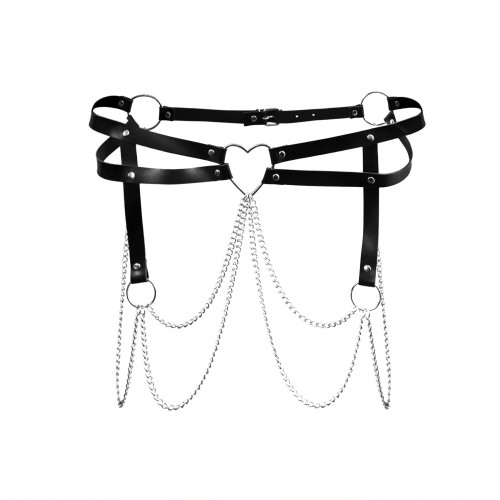 Кожаный пояс декорированный цепочками Art of Sex - Becky, размер L-2XL, цвет Черный