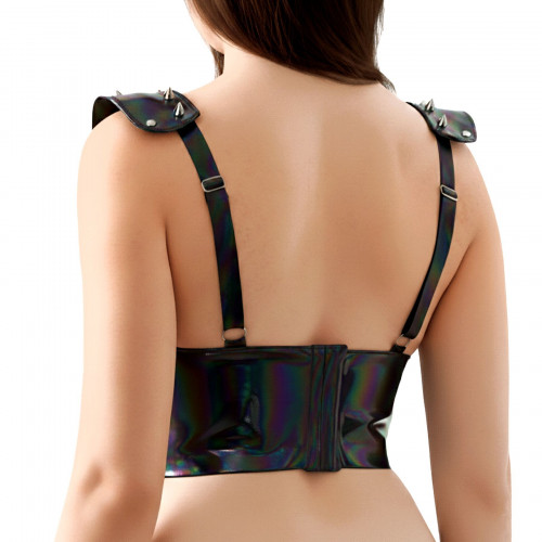Лакированный виниловый лиф с шипами Art of Sex - Mistress, черный с эффектом голограммы, размер S