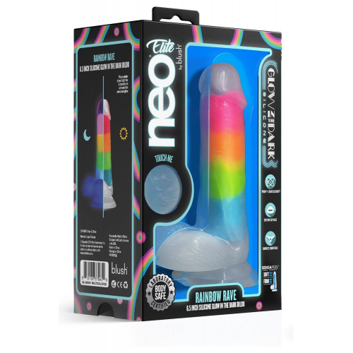 Фаллоимитатор реалистичный на присоске Blush Neo Elite светящийся в темноте, радужный