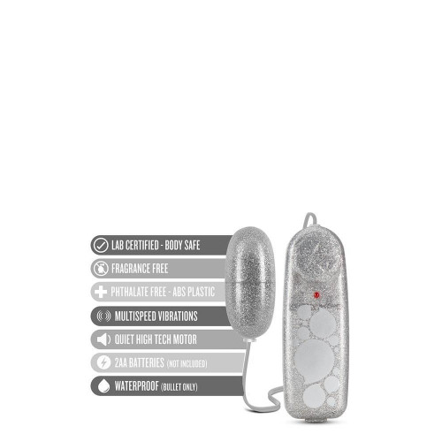 Виброяйцо с пультом управления B Yours с глиттером, серебристое