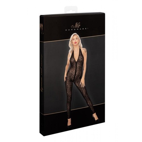 Эротический полупрозрачный комбинезон с молнией F286 Noir Handmade, с леопардовым принтом, черный