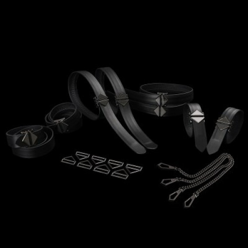 Различные мелочи из мира БДСМ ждут Вас в этом наборе девайсов. Ошейник, пояс, наручники и поножи не оставят Вас и Вашего партнера безразличными.