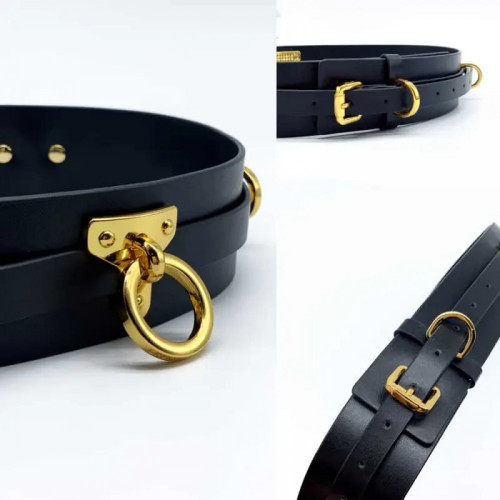 Бондажный пояс из итальянской кожи UPKO с золотистой фурнитурой, черный