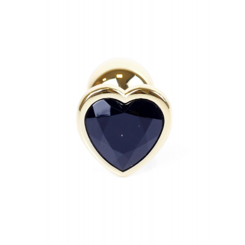 Анальна пробка золотистого кольору. Створена з високоякісного металу, безпечного для здоров'я. Іграшка має зручний розмір і гладку конічну форму, яка забезпечує комфортне проникнення. Для додаткових відчуттів, іграшку можна помістити в гарячу або холодну воду. Широка основа пробки виконана у формі серця та декорована чорним кристалом. Довжина - 7 см, діаметр - 2,7 см.