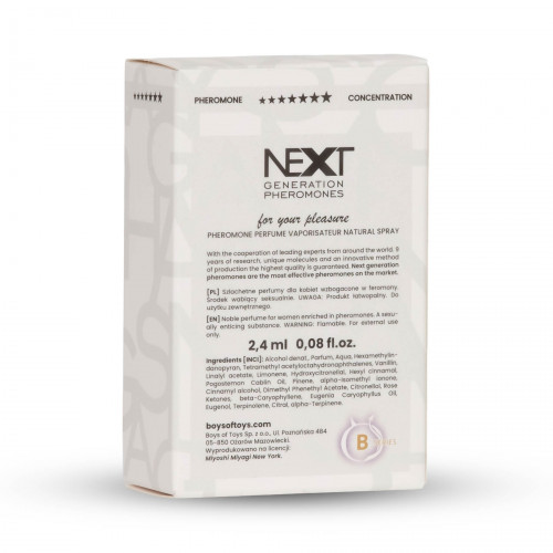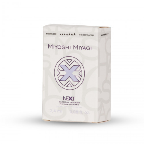 Miyoshi Miyagi Next – жіночі парфуми з феромонами нового покоління, створені для сучасних жінок, які хочуть підкреслити свою привабливість і жіночність. Аромат відкривається соковитими нотами чорної смородини, далі розкривається ніжними відтінками фрезії та троянди, а завершують композицію теплі акорди ванілі, амброксану, пачулі та деревини. Цей парфум поєднує свіжість і витонченість, підкреслюючи жіночність та додаючи шарму у будь-якій ситуації. Об’єм: 2,4 мл.
