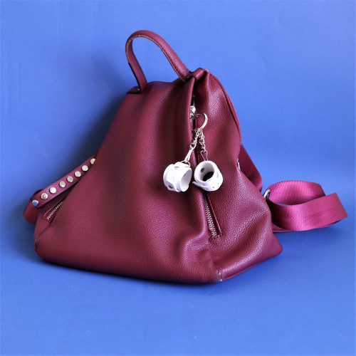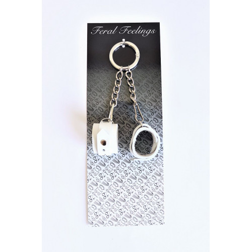 Предлагаем купить брелок наручники белый — дерзкий сувенир, который легко найдет место на вашей сумке, рюкзаке или ключах! Изготовленный из натуральной кожи, он полностью повторяет настоящие наручники.