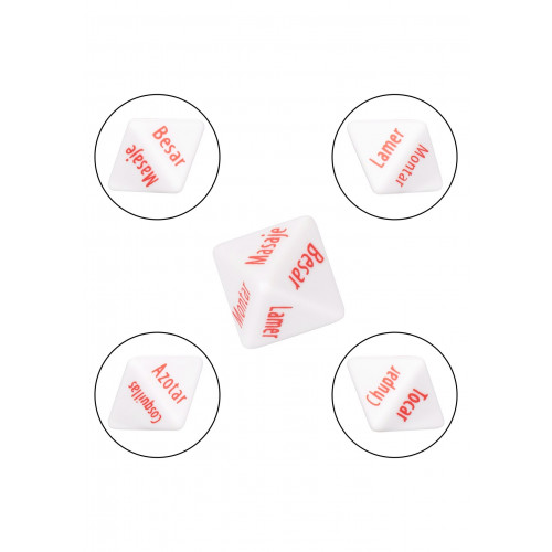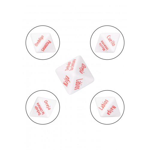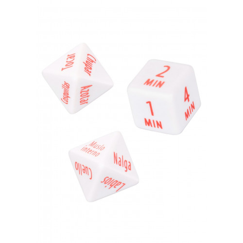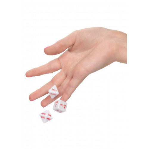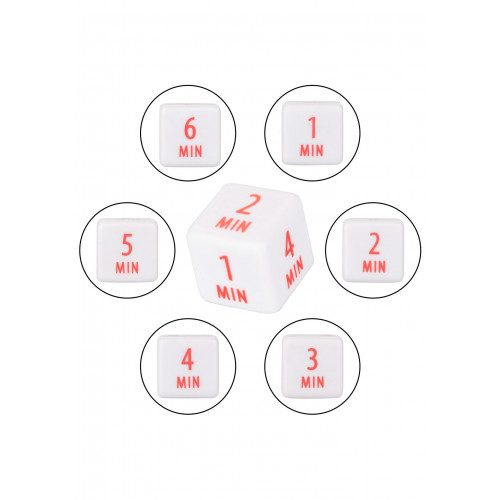Светящиеся в темноте игральные кубики представляют пикантные ощущения, которые игроки будут испытывать, развлекаясь в темноте. Игра включает 1 кубик для части тела, 1 кубик для действия и 1 кубик, который показывает, сколько минут происходит каждое действие.