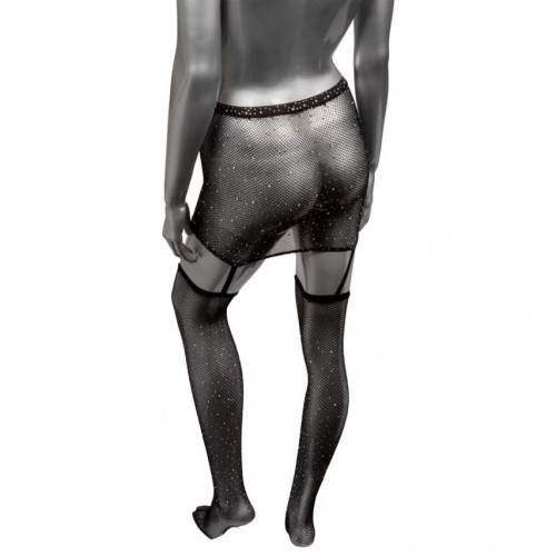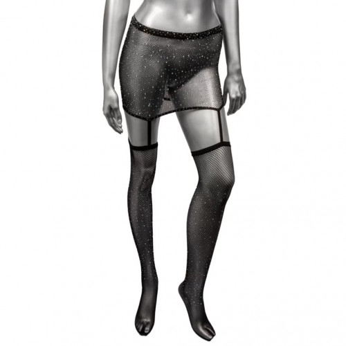 Пояс-юбка с чулками в сетку со стразами Calexotics Garter Skirt Thigh Highs, черный