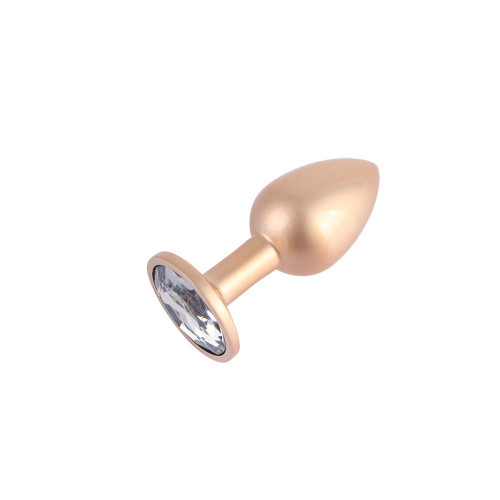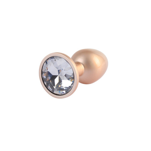 Анальная пробка розовое золото CHISA MATRIX MONT с перламутром и белым камнем, размер S