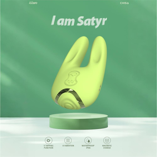 Двусторонний вибратор для клитора Chisa Kissen Satyr с вибрацией и пульсацией, зеленый