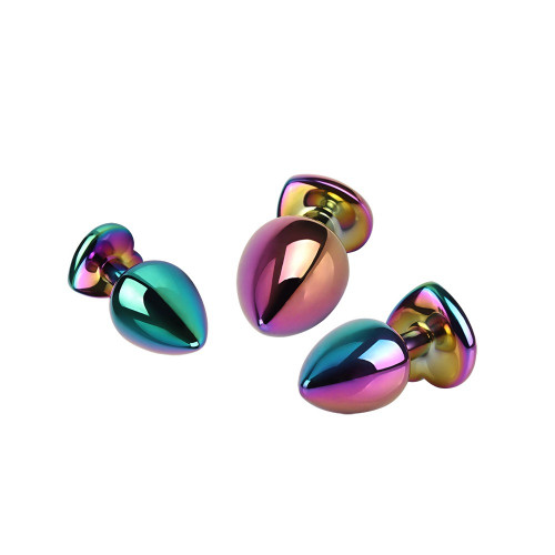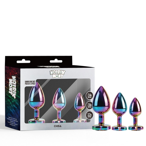 Набор анальных пробок разноцветные CHISA MATRIX MONT с разноцветным камнем в форме сердца, 3 шт
