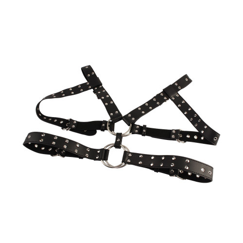 Этот украшенный заклепками топ для системы фиксации станет прекрасным дополнением к вашей коллекции товаров для интимных игр. Не отказывайте себе в удовольствии испытать настоящие пытки и дать волю своим самым сокровенным желаниям с помощью этого элегантного и практичного аксессуара.