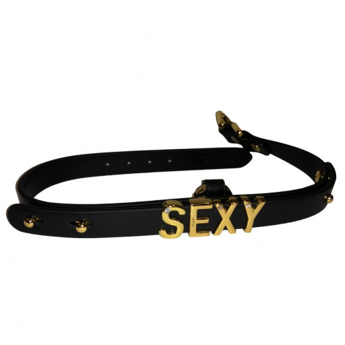Чокер с надписью SEXY от UPKO из итальянской кожи, черный с золотой фурнитурой