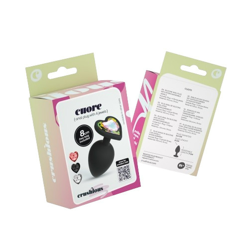 Анальная пробка Cuore Crushious, с сменными кристаллами, силиконовая, черная, 8 х 3.4 см, размер М