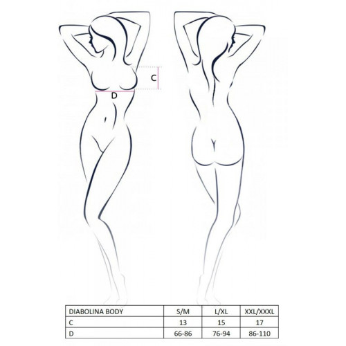 Предлагаем купить откровенное боди DIABOLINA BODY black L/XL - Passion — действительно дьявольски соблазнительный наряд, плотно охватывающий тело возбуждающими кружевами и ремнями. Разжечь пламя страсти, играть чувствами, ласкать и наказывать — на все это вы будете способны в этом чертовски привлекательном боди.