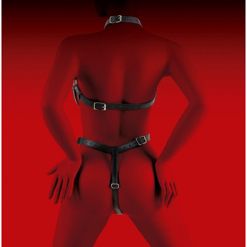 Полностью регулируемая женская портупея для тела из веганской кожи.
