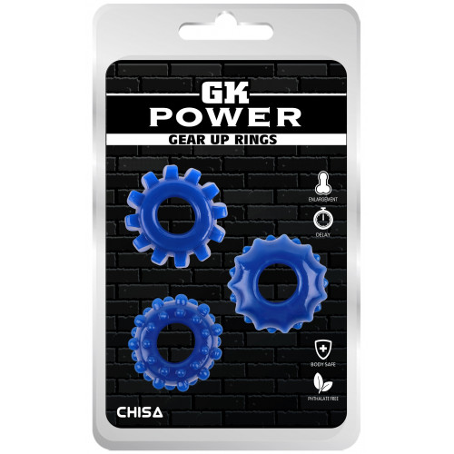 Эрекционные кольца-GK Power Gear Up Rings-Blue