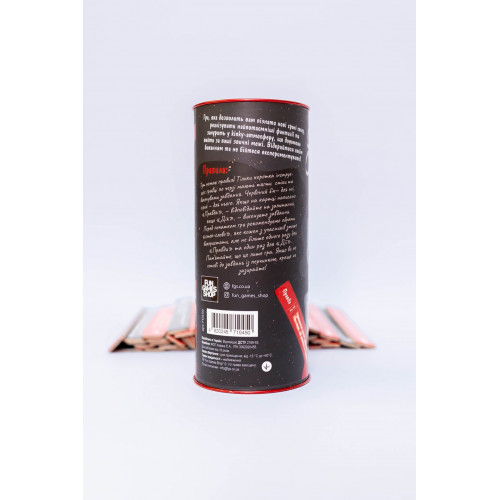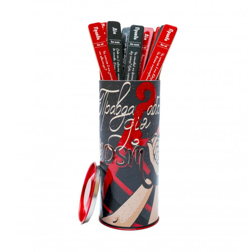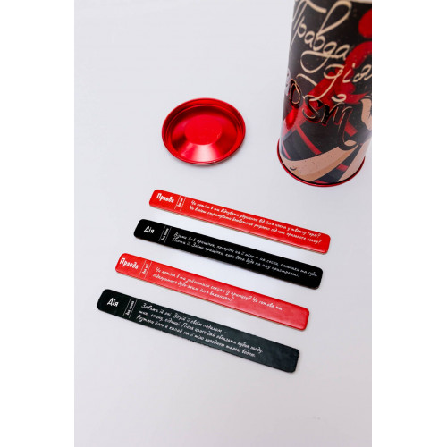 Коротко о правилах: Здесь нет правил! Только небольшая инструкция: вы по очереди тяните стики. Красная сторона — задания для неё, Серая — задания для него. Если на стике написано «Правда» — отвечайте на вопрос, если «Дія» — приступайте к заданию. Перед началом игры рекомендуем выбрать «стоп-слово», которое каждый из участников может использовать, но не более одного раза для стиков «Правда» и «Дія». Помните, это игра. Но если вы не готовы, лучше не смотрите под крышку!