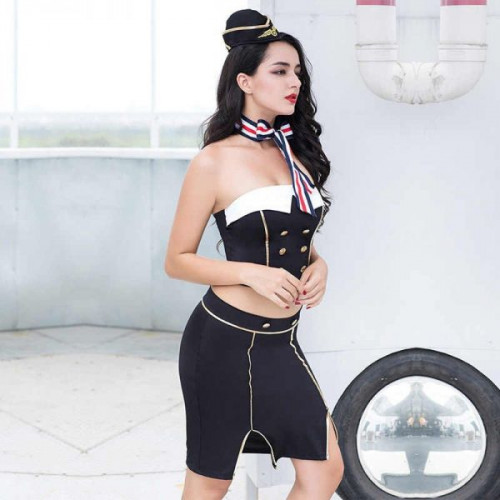 Наряд соблазнительной стюардессы наполнен сексуальной энергией и сумасшедшей страстью. В этом ролевом костюме есть все для удачного полёта: короткий кокетливый топ, облегающая юбка, яркая пилотка, трусики и легкий платок на шею. Предложите своему «пассажиру» напиток для смелости на борту, и полёт пройдет на высоте.