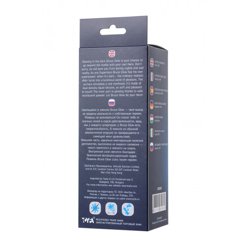 Светящийся в темноте Bruce Glow - твой выход за пределы реальности с собственным героем. Можешь не волноваться! Он спасет тебя от скучных ночей и серой действительности, ведь, как у каждого супергероя, у Bruce Glow есть сверхспособность. В темноте из обычной реалистичной игрушки он превращается в сияющий жезл удовольствия. Внешняя часть, идеально имитирующая мужское достоинство, выполнена из жидкого силикона - такого приятного и нежного на ощупь. Внутренний слой светится благодаря безопасной фосфоресцирующей пудре. Позволь Bruce Glow стать твоим героем.