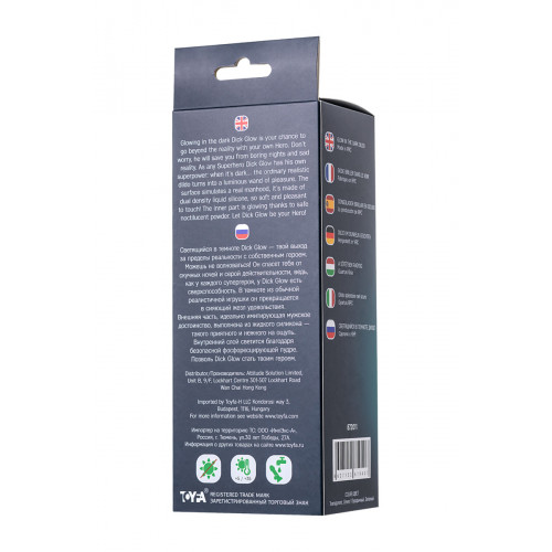 Светящийся в темноте Dick Glow-твой выход за пределы реальности с собственным героем. Можешь не волноваться! Он спасет тебя от скучных ночей и серой действительности, ведь, как у каждого супергероя, у Dick Glow есть сверхспособность. В темноте из обычной реалистичной игрушки он превращается в сияющий жезл удовольствия. Внешняя часть, идеально имитирующая мужское достоинство, выполнена из жидкого силикона - такого приятного и нежного на ощупь. Внутренний слой светится благодаря безопасной фосфоресцирующей пудре. Позволь Dick Glow стать твоим героем.