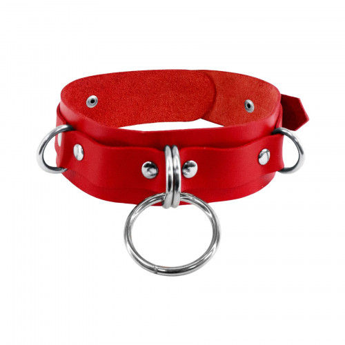 Ошейник для фиксации из натуральной кожи Feral Feelings - D-Rings Red