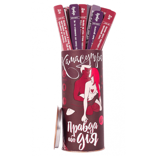 Ця гра додасть вогника у ваші стосунки! Ви отримаєте можливість краще пізнати одне одного та спробувати щось новеньке в ліжку. Вибираючи «Правду», ви дізнаєтеся про таємні бажання, вподобання та погляди вашого партнера. А обравши «Дію», ви зможете втілити в життя найпотаємніші сексуальні фантазії або спробувати щось абсолютно нове для вас. В комплекті: 50 дій і 50 питань