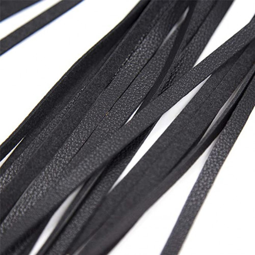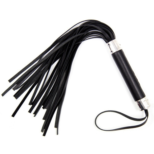 Флоггер выполнен из качественного заменителя кожи, имеет оплетенную ручку с петлей на конце.