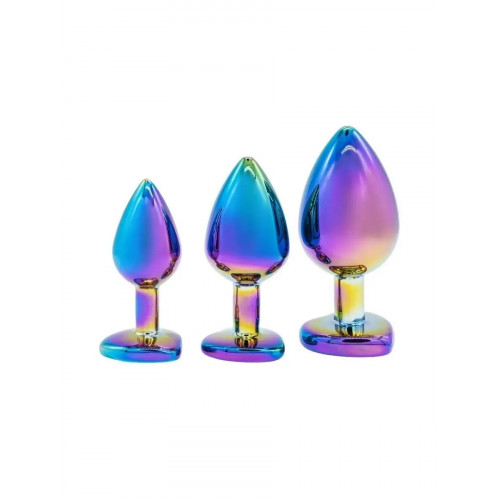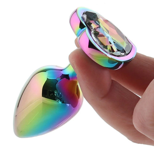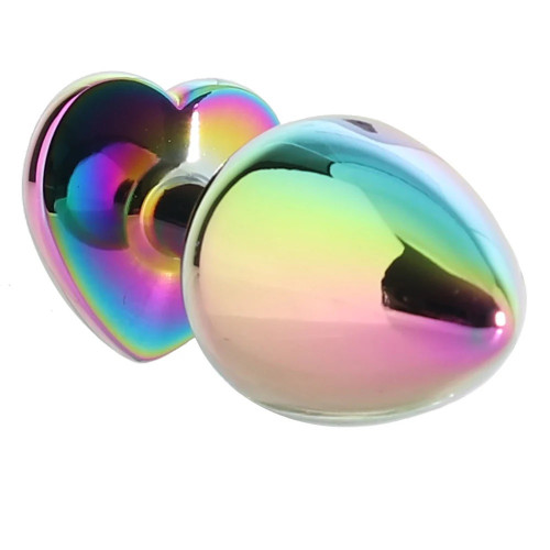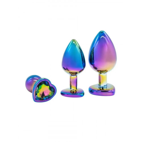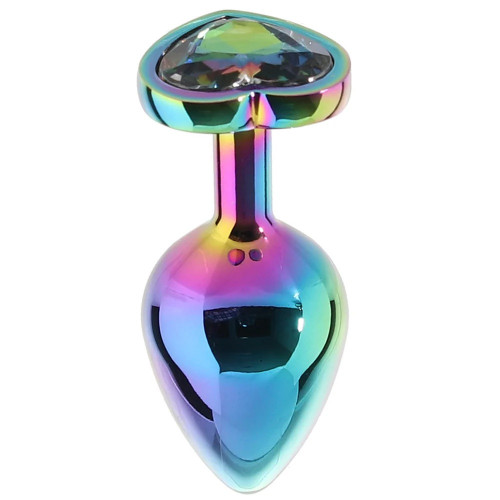 Анальная пробка разноцветная металлическая Funny Steel с разноцветным камнем в форме сердца, S